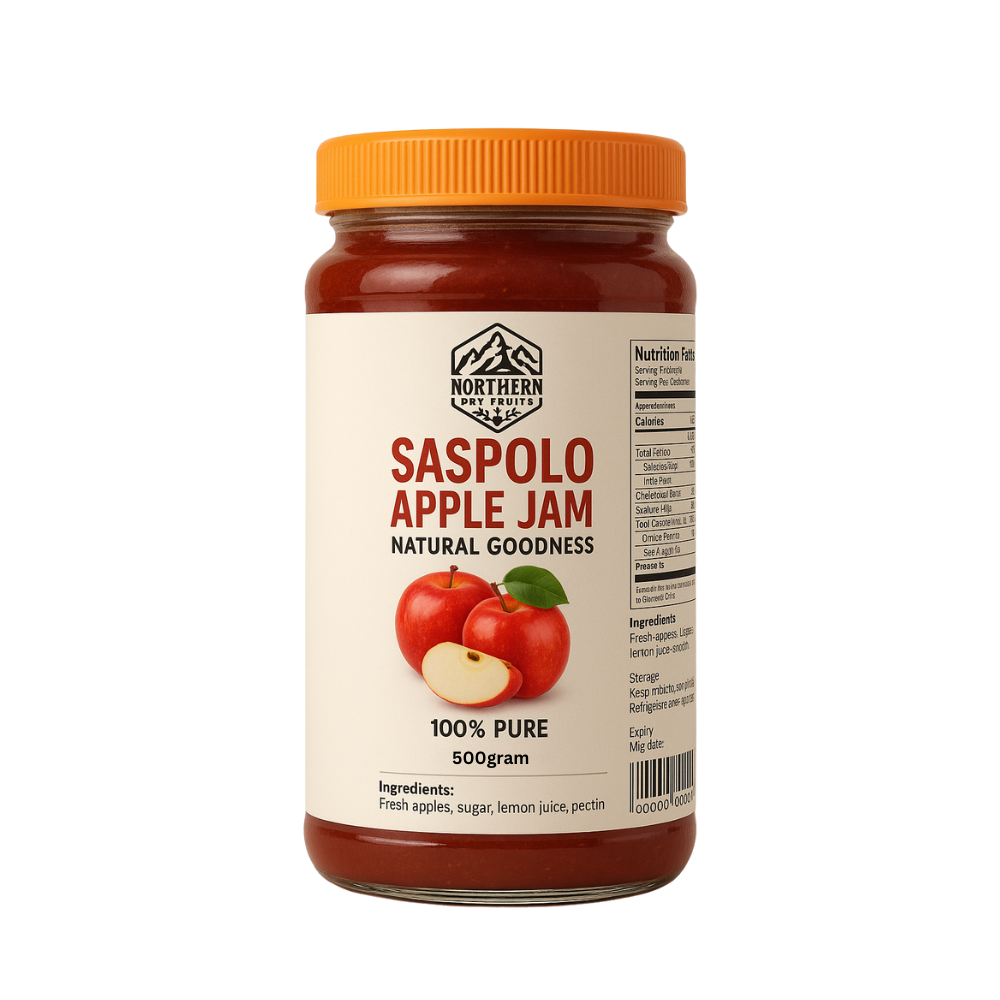 Experience the authentic taste of the mountains with Saspolo Apple Jam, made from handpicked apples grown in the clean, cold air of the Himalayan valleys. Each jar is filled with the natural sweetness of ripe apples, slowly cooked to perfection without artificial preservatives or colors. The result? A rich, smooth, and wholesome jam that captures the true essence of fresh Himalayan fruit.